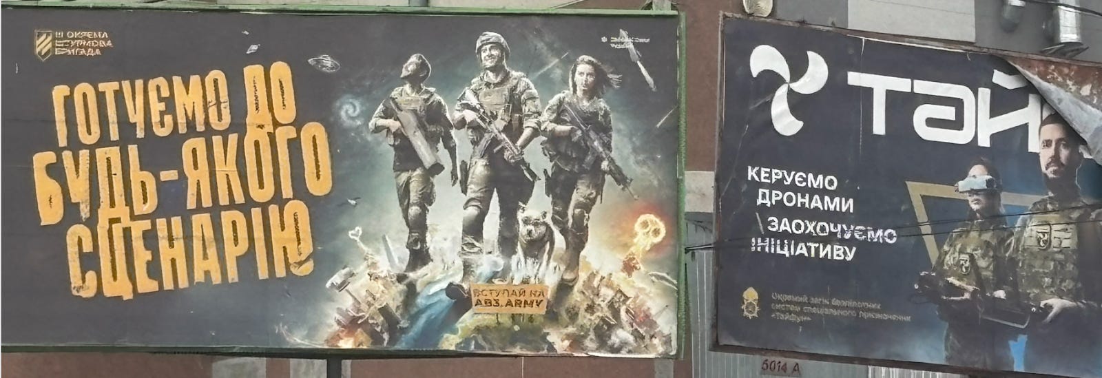 Recruitment ads plaster the streets - and surprisingly brigades independently advertise themselves like brands. The most famous ones are Azov and the 3rd Assault Brigades. These have evolved from military units into cultural movement: selling merch, hosting music festivals, and running independent fundraising campaigns. This decentralisation of warfare is even taking over procurement, as each brigade increasingly buys and iterates on its own equipment.